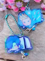 Trigun gang in cute mochi version!pick your favorite character from this mix from Trimax and Stampede. Printed in colored blue acrylic and made for attach them to each other, you can put all your favorites together and make you connection charm!